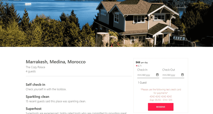 I made a fictional web application like the vacation rental online marketplace Airbnb. You can log in and rent venues paying by credit card on Stripe TEST MODE and also post comments about venues which you have rented before. This is a my second project with React and Redux.